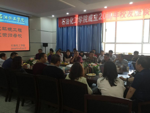在庆祝石油化工学院成立20周年暨化工机械学科创办56周年之际,9月25日下午,环境工程专业校友座谈会在石化大楼319会议室如期举行。出席会议的有特邀嘉宾、环境工程专业毕业校友、环境系全体老师及在校研究生和本科生代表共计40余人,会议由环境系主任赵霞老师主持。