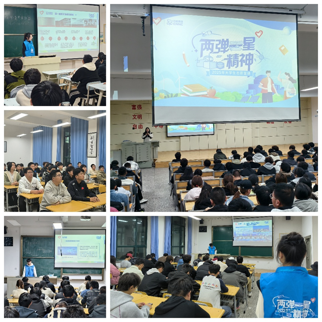 返校后,在学院团委统一安排下,宣讲团面向全院新生、深入11个基层团支部,开展“两弹一星”精神、中国核工业发展、“双碳”目标、北山工程等专题宣讲,将科学家精神与石油化工专业学习紧密结合,引导青年学子厚植能源报国、科技强国的家国情怀。团队还积极拓展校地共建,走进兰州市七里河区火星街小学等周边中小学,以“人造太阳”模型演示、趣味互动问答等喜闻乐见的形式,开展核科学启蒙教育,让红色基因与科学梦想在校园落地生根。