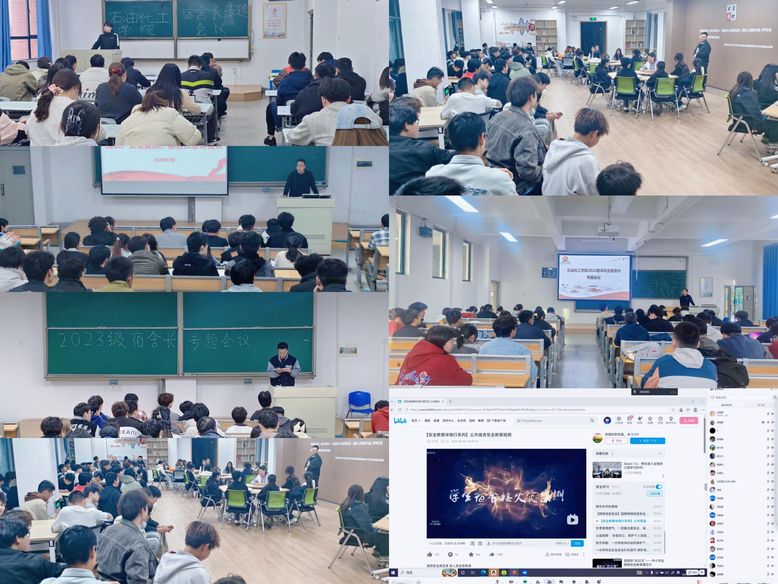 为响应学校工作号召,切实提升宿舍长队伍工作效能,石油化工学院于2026年3月25日至4月2日,通过线上线下相结合的方式,分年级组织召开了全体宿舍长专题会议。会议在各年级分会场依次进行,学院党委副书记、辅导员及全体宿舍长参加。会议旨在进一步夯实学生社区管理基础,强化宿舍长在安全稳定、信息沟通与文明建设中的关键作用。