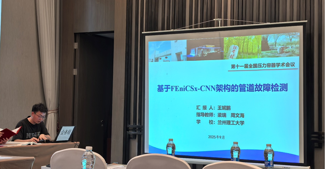 石油化工学院梁瑞教授带领学院师生参加了该次学术会议,并作为压力容器分会常务委员出席了第十一届委员会会议。硕士研究生李林彬和王妮鹏在分会场分别做了报告。李林彬同学围绕《基于数字孪生技术的多层包扎容器应力预测方法》展开阐述,展示了课题组取得的阶段性成果。王妮鹏同学则以《基于FEniCSx-CNN架构的天然气长输管线状态监测方法》为主题,分享了自己在相关领域的深入思考与独特见解。