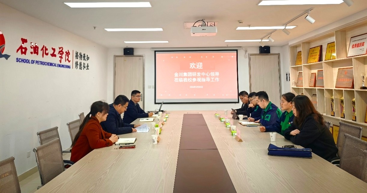 2026年3月25日,金川集团研发中心(国家镍钴新材料工程技术研究中心)电池技术研究所所长高文斌高级工程师、研究员刘瀚文博士、杨克勇高级工程师、王靖景及科研管理部吴婧一行应邀来石油化工学院考察交流。石化学院副院长王坤杰,学院科研骨干教师代表参加了此次会议,会议由王坤杰副院长主持。