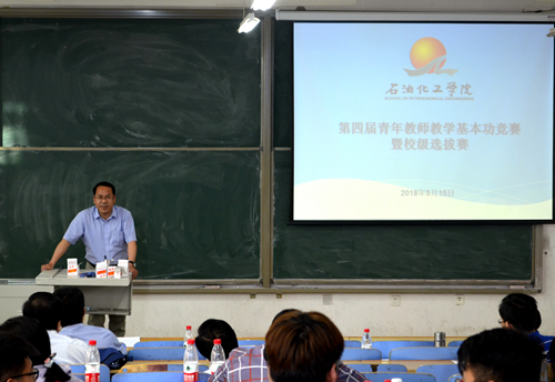 2017年5月15日13点,石油化工学院在西校区4号楼306教室举行了青年教师教学基本功竞赛。由学院教学指导委员会成员、学院领导、基层组织主任组成专家评委组,21名各专业学生组成学生评委组,学院共有11名青年教师参加竞赛,近三年入职的青年教师到场观摩学习。