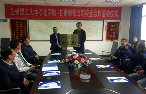 2018年5月10日上午,兰州理工大学石化学院与甘肃驰奈生物能源系统有限公司签订校企合作协议。石化学院院长李贵贤,副院长梁瑞、张伟政,环境工程系主任赵霞及部分教师代表,2014级环境工程专业本科学生,甘肃驰奈公司董事长宝林及公司相关领导、部分管理人员近80人参加了签约及揭牌仪式。