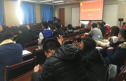 李老师结合实例,现身说法,生动形象地分析了化工专业的同学们面临的严峻就业形势,为同学们指明了如何在这种就业形势下调整就业心态,转变就业观念,开拓就业新道路起到了积极的指导作用。