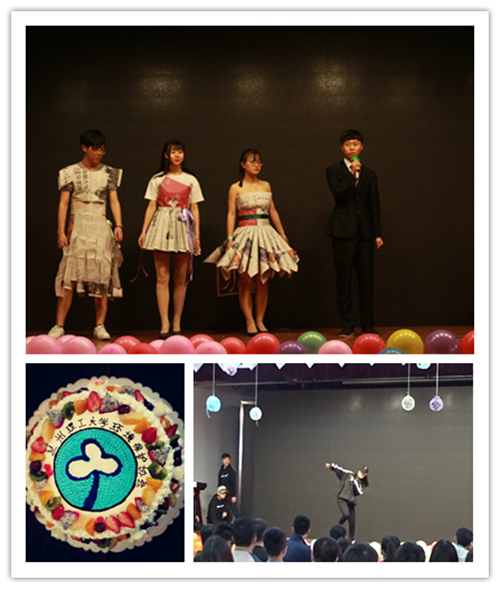 会庆在环保协会同学十年前创作的悠扬会歌《希望》中开始,通过PPT、小视频等方式,生动的展示了十八年来一批批协会成员锐意进取,开拓创新,在校园文化活动和暑期社会实践等平台不断摸索和实践,将协会打造成为省内知名并在全国有一定影响力的高校环保社团的历程,让现场的观众体会到了协会“传承、协作、创新”的社团文化。接下来曳步舞社团、The-X魔法学院、环境保护协会各部门为大家带来了精彩纷呈的文艺表演,引来了大家的掌声与喝彩,伴随着印有环保协会会徽生日蛋糕的出现,现场气氛达到高潮。会庆最后,指导老师强龙勉励协会成员在“一心双环”的团学组织新格局下,积极适应共青团改革新形势和广大同学的新特点,主动对照党的期望、团的要求,促进“三下乡”等实践项目的内涵提升,切实发挥学生社团的外围延伸手臂作用,团结带领更多青年争做“绿水青山就是金山银山”理念的守护者、践行者,积极为改善生态环境传播好声音、聚集正能量。