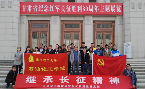 11月15日下午,在石油化工学院梁瑞副院长带领下,石化学院研究生化工过程机械第三党支部全体学生党员参观了甘肃省博物馆"纪念红军长征胜利80周年暨西路军西征80周年”大型爱国主义专题巡展。