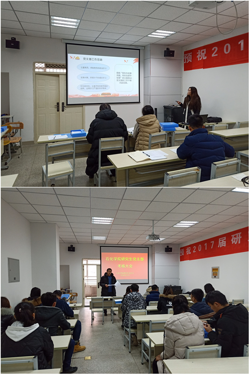 2018年12月28日石油化工学院研究生党总支按照学院党委要求,在彭家坪校区石化大楼316室召开2018年度学院研究生党支部考核大会。学院研究生党总支书记梁瑞、副书记及党总支委员,各党支部书记出席会议。会议由党总支组织委员冯玉玺主持。