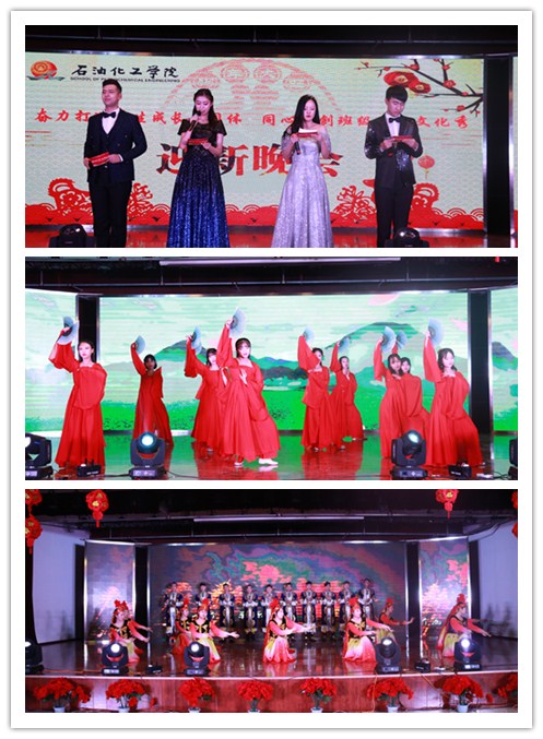 表彰会后,举行了“奋力打造学生成长共同体,同心共创班级特色文化秀”之“多彩石化,缘来有你”为主题的迎新晚会。晚会以“缘聚工大,启程有你”、“多彩石化,执梦远航”、“一八有你,不负韶华”三个篇章做引领,以研究生、本科生班级特色文化展示为主旋律,融合了诗朗诵、舞台剧、歌曲、舞蹈、古筝配乐舞、相声等多种艺术表现形式,为观众带来了一场精彩纷呈的艺术享受。18级过控2班、环境1班学生带来的阿卡贝拉《飘向北方》《平凡之路》、歌曲《不染》和《喜欢你》一壶清酒,一身尘埃,高山仰止,景行行止,虽不能至,心向往之,以其独有的舞美展现,诠释了当代大学生对于美好生活的向往和热爱;18级过控1班带来的古典舞《桃花烙》,以优美的古典舞姿诠释了当代大学生对爱情“本该甘于平淡,却又不平淡;本该甘于平凡,却又不平凡”的全新理解、诙谐幽默的相声《满腹经纶》,结合校史院情,学生成长故事,为在场的学生带来了中国传统艺术的独特魅力、大合唱《怀念青春》,展示了同学们班级凝练的情怀,静守岁月芳香,刻画青春芳华;18级化工1班、化工(卓越)班带来的街舞《bikini body+hand clap》时尚劲爆,紧紧结合当代大学生的个性发展,与在场的同学们形成共鸣;18环境1班、安工1班、油储1班带来的新疆舞《大美新疆》展示民族特色文化,学院7位新疆同学倾情演绎,成为晚会一道亮丽的风采;18过控2班带来的街舞串烧,以其欢快的节奏,燃爆全场;18级应化2班带来的小品《神雕侠侣》绘声绘色再现经典,赢得全场欢呼。18级研究生班带来的街舞《Poison Paradise》、《I am so sick》,跳跃的音符,动感的舞姿,向我们展现了新时代研究生的青春风采、小品《十年之约》以十年为期,情怀演绎同学情谊、诗朗诵《十里春风不如你》陌上花开,青山碧水,不染红尘,春林初盛,展现同学们对爱情的阐释。