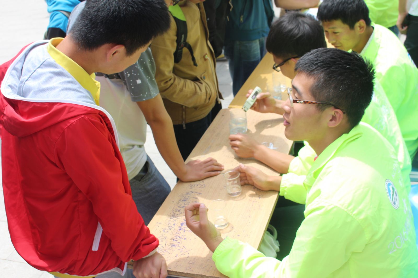 此次环保主题活动主要内容包括:在节水知识展板前为同学们讲解生活中节水的知识和技巧、指导同学们亲手测试水质以及一些有关节水活动的问卷调查等等;在展台后方是“节水金点子区”,同学们可以留下自己对洁水以及节水的建议和意见。在整个活动过程中,将图文、实物展示与游戏互动相结合,丰富的节水知识、有趣的节水游戏,让同学们在参与过程中学习到节水常识,增强了环境保护意识。