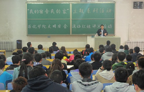 4月9日中午,石化学院在西校区2号楼208教室召开文明宿舍流动红旗评比活动及宿舍长大会。学院王雪平副书记、辅导员、两委会学生干部及2011级、2012级、2013级各宿舍长300余人参加会议。
