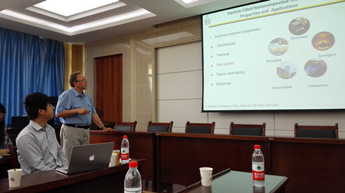 应石油化工学院邀请,美国南密西西比大学聚合物与高性能材料学院的Sergei Nazarenko教授访问我校开展学术交流,并于2015年6月2日在西校区石化学院大楼--318学院报告厅进行了“Multilayered Nanocomposites Containing High Aspect Ratio Particulates”专题学术报告现场。在校访问期间,Sergei Nazarenko教授与石化学院青年教师座谈,就多层复合材料等科研方面的问题进行了深入的交流。石化学院副院长冯辉霞教授主持了报告会,应化系主任王毅、基础化学部主任王坤杰、雒和明教授、谭琳副教授、陈丽副教授、陈娜丽副教授、张建强副教授及材料学院张定军副教授、王海燕老师等,以及近百名研究生参加了报告会。Sergei Nazarenko教授结合其研究成果,就高分子物理、高分子化学、复合材料相关领域的前沿科学问题与在场老师和同学进行了深入交流。Sergei Nazarenko教授曾于2013年10月来访过我校,这是他第二次来兰。他表示双方将来可以创造出更多的师生交流。