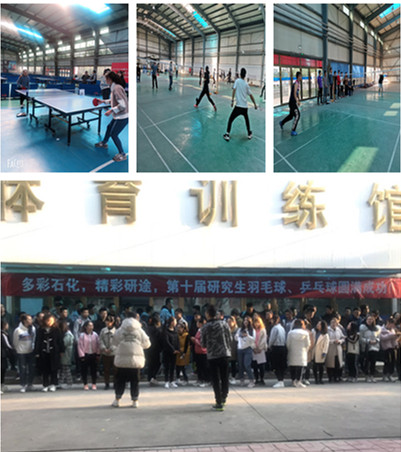 2019年11月9-17日,在彭家坪校区体育馆举行第十届石化学院研究生羽毛球、兵乓球比赛。共有学院200余名硕博研究生报名参加了比赛。选手们斗志昂扬、奋尽全力,充分展现了研究生的青春活力和积极向上的生活态度。