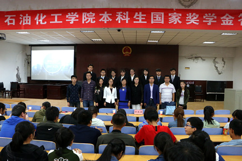 9月25日中午,石油化工学院在西校区1号楼108教室举行了2016-2017学年度国家奖学金答辩会暨别开生面的新生入学教育专题会。学院党委隽惠玲书记、李荣华副书记、班主任代表、辅导员和学生代表共9人组成本次国奖答辩评委会,2017级全体新生参加了本次大会。