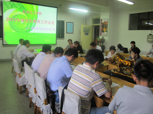会议学习讨论了有关研究生培养与管理、导师责任与义务等校院两级的相关规章制度,提出了学院研究生教风学风建设实施方案。实施方案中明确提出了2013年,学院将从完善拔尖创新人才培养机制、推动教学改革和课程建设、建立和健全校院两级研究生培养和导师管理机制、扩大国内外学术交流与合作、加强研究生思政教育队伍建设等方面进一步深化研究生教育改革。,