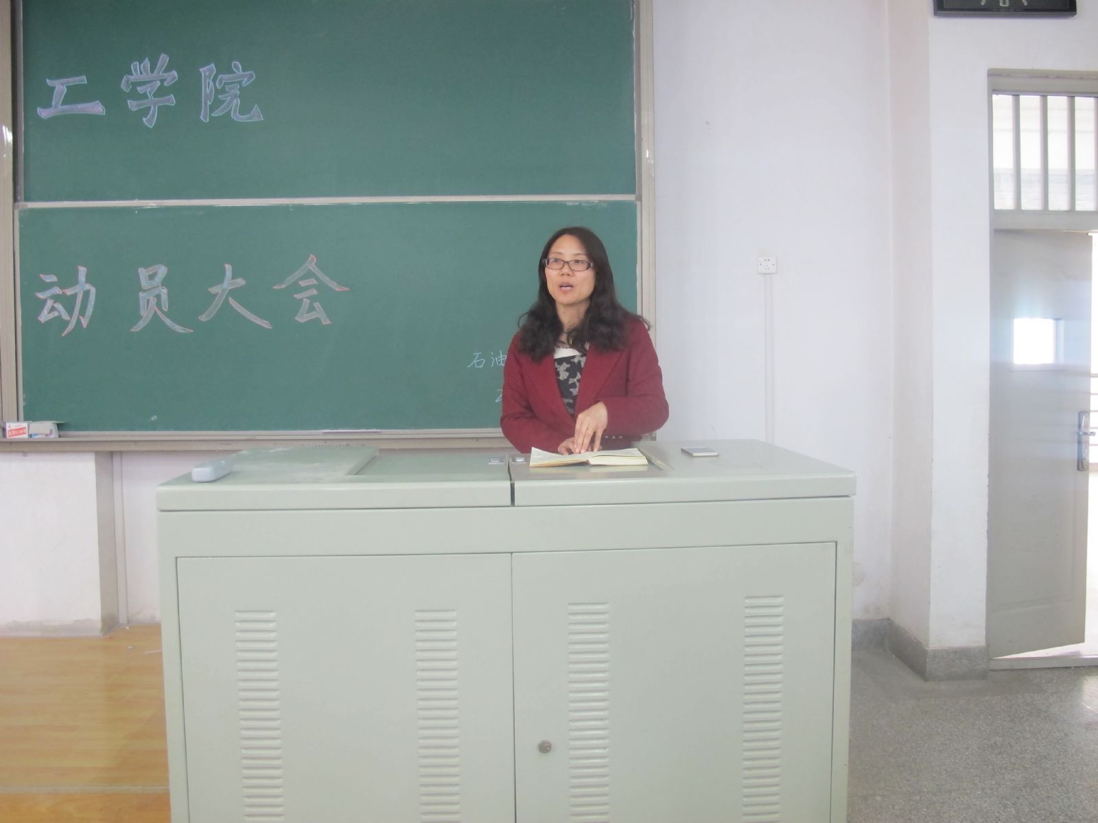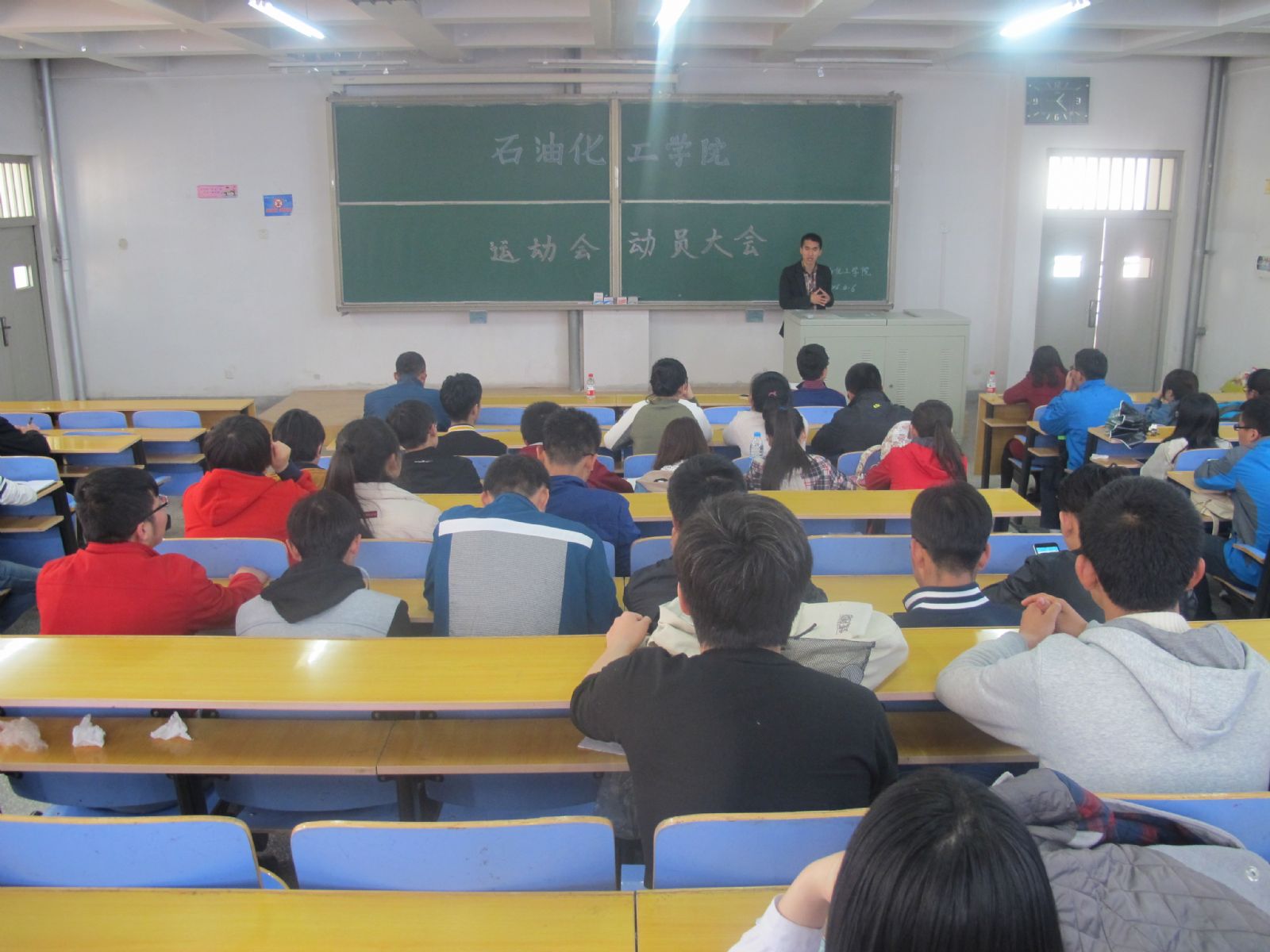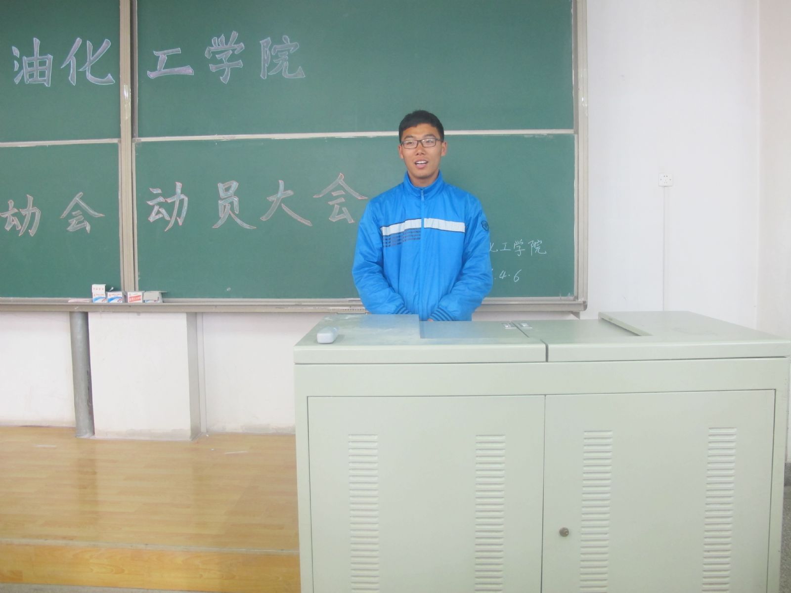 会议伊始,骆老师就去年校运会学院的参赛情况以及取得的成绩作了通报和分析,对今年的运动会比赛时间、比赛项目、各部门工作分工等方面进行了简单的介绍和安排。紧接着尘强同学代表运动员上台发言并提出倡议,他号召大家要发扬更高、更快、更强的奥运精神,在赛场上积极进取,发扬团队协作精神,在各项比赛中,要赛出风格,赛出友谊,更要赛出水平,赛出成绩,充分地展示石化学子的风采。