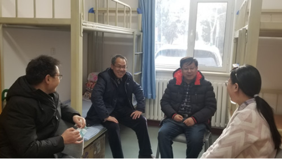 1月29日上午,石油化工学院党委书记滕怀荣、院长李贵贤、副书记张飞龙、辅导员常婕对因疫情而未能离校的2019级硕士研究生姚瑞瑶同学进行了慰问。院领导悉心询问了该生在校的生活情况、家人的健康情况以及家庭的经济状况,并送上了慰问品。