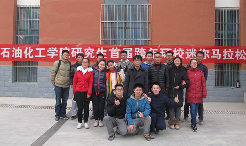 12月31日下午,石油化工学院研究生举行了首届跨年环校迷你马拉松赛,用奔跑的方式迎接2016的到来。比赛共有八十余名同学参加,起点为石化大楼,后经西门、体育场、北村篮球场、北村、六号楼回到石化大楼,线路全长3.2km。最终杨丽梅、李丽、薛青花获得女子组前三,焦纪强、曹斌、胡涛获得男子组前三。