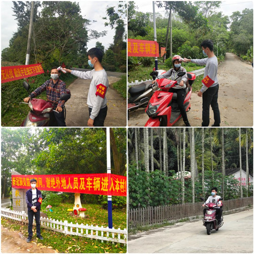 2017级入党积极分子卢家祥,家住海南省琼海市加积镇黄崖村委会文敬村。从2020年1月25日海南省政府决定启动突发公共卫生事件一级应急响应以来,卢家祥同学应村委会号召,积极加入了本村的疫情防控工作,主要负责在村内巡逻,对聚集开展娱乐活动的村民进行劝说,防止疫情的蔓延传播。由于聚集娱乐的群众大多年长于卢家祥同学,对于他的劝解,大多一笑了之,并不付诸行动,甚至有些村民还笑卢家祥同学有些小题大作,但作为一名入党积极分子,卢家祥并没有因此而动摇立场,他在网络平台上找来钟南山院士向全国人民宣传防控疫情措施的视频,找来一线医护人员的采访视频播放给大家,让聚集玩耍的村民真正了解到目前疫情蔓延的严重形势,让大家知道少聚集对于防控疫情的良好效果,让大家知道目前全国上下都在齐心协力抗击疫情,以此让村民们知道我们每一个人都有责任和义务为抗击疫情贡献出自己的力量!少打一场牌,少聚一次会,是对自己的保护,更是对他人的负责!通过卢家祥同学的努力,村内聚集娱乐的情况明显好转,抗击疫情的工作受到了村民们的广泛认可,卢家祥同学说:在疫情到来的特殊时期,作为青年大学生,作为一名共青团员,我们必须勇担使命,为打赢抗击疫情的特殊战役贡献出自己的力量!习近平总书记说过,青年人要自找苦吃,于是在村里组织抗击疫情突击队的时候我踊跃报名了,但与奋战在一线的医务人员相比,与千千万万坚守在自己岗位上的螺丝钉相比,我只是尽了自己的一份绵薄之力。我坚信,这场抗击疫情的战役定当在不久后取得胜利,愿所有奋战在一线的医务工作者能够平安,愿所有在医院接受治疗的同胞们能够痊愈,等我们再次返回学校继续学业的时候,也必定会迎来一个新的春天!