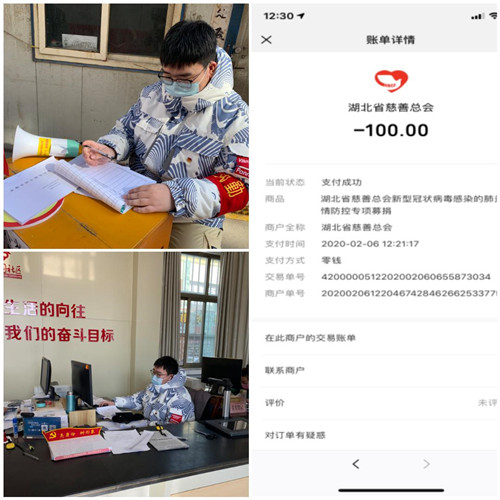 此外还有2019级硕士研究生党员史亚刚、张耀壬、郭鹏同学积极主动加入当地防控疫情第一线的队伍,还有党员、入党积极分子通过不同方式献爱心,均纷纷表示作为当代大学生应该有这份担当,能够为疫情防控做出一些贡献觉得非常开心!