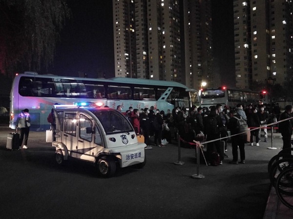 严密组织,精准安排返校行程。11月12日,学校充分考虑兰州市疫情防控形势和防控措施调整情况,充分考虑学生所带学习资料不足、天气转冷所带保暖衣物不足、网络信号带来的学习效果不佳等问题,决定开始组织师生返校。为做好返校途中的安全防护,石化学院召开党政联席会议在充分研究的基础上,全体班子成员连夜和带队老师召开线上会议,就严密开展核酸检测、合理选择交通工具、加强学生组织管理、做好突发应急预案等问题进行详细沟通。13日9时50分,在指导教师的细心指导下全体师生按照规划路线,通过专属通道、监测体温、健康码检查等手续后有序乘坐动车开始返校。学校安排3辆通勤车统一接站,石化学院班子成员及辅导员在彭家坪校区东区等候师生的到来,相关部门随即开展贴心的疫情防控和生活服务。学生们步入阔别许久的校园,言语与眼神都闪耀着激动与喜悦。