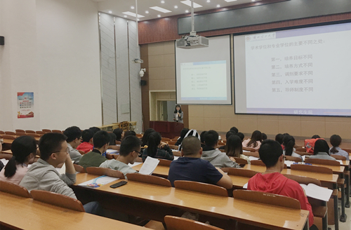 会上,招生小组许巍老师向文理学院的同学们介绍了研究生报考常识、考研形势、报考注意事项等,之后对我校的研究生待遇及研究生教育进行了重点介绍,引起同学们的极大兴趣。之后,石化学院马贺清老师对我校石化学院的招生情况向学生们做了简要介绍。最后,理学院王向贤副教授对学生们考研过程中对数学科目的疑问进行了详细解答。