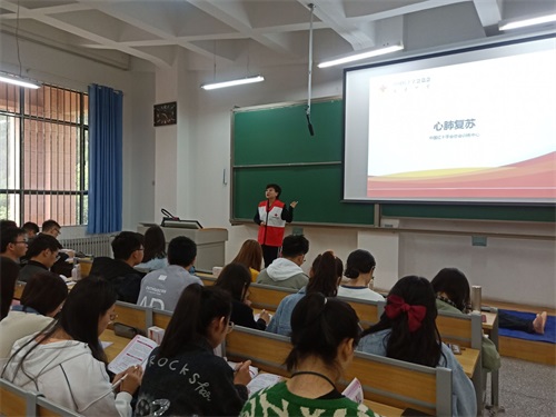 主讲老师为学生们讲解心肺复苏知识