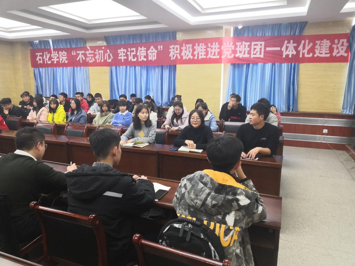 11月21日,石化学院在彭家坪校区石化大楼318召开了18级“不忘初心、牢记使命”积极推进党班团一体化建设会。党委副书记李荣华、辅导员樊晨浩、王芳莉及18级班团干部参加了会议。
