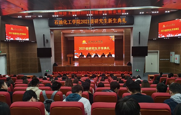 2021年10月18日,石油化工学院在彭家坪校区问鼎堂106报告厅举行了2021级研究生开学典礼暨入学教育活动。学院全体班子成员、研究生辅导员及2021级全体硕士、博士研究生参加。