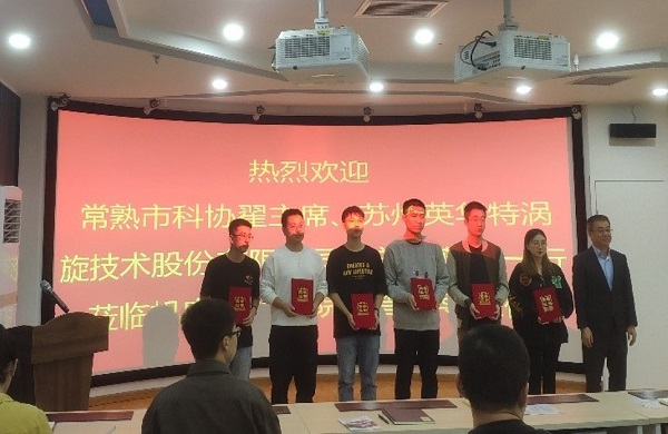 为拓展校企合作领域,助力行业人才培养,2021年9月,苏州英华特涡旋技术股份有限公司董事长陈毅敏、副总经理蒋华及常熟市科协调研员翟俊霞等一行4人来我校开展产学研合作交流并举行“英华特涡旋励志奖学金”设立暨颁奖活动。