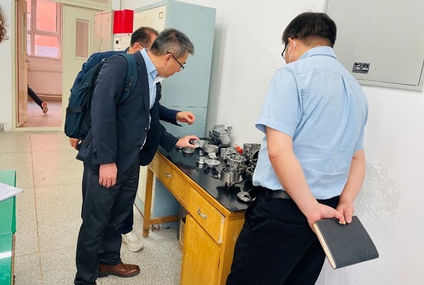 机电工程学院院长安宗文、副院长彭斌,石油化工学院、机电工程学院涡旋机械研发团队成员及涡旋机械方向研究生参加了奖学金颁发、现场考察和座谈交流。