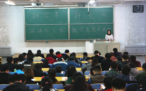 3月8日中午,石油化工学院在新校区2号楼208教室召开了全体学生党员大会,学院党委副书记李荣华、全体学生党支部书记和学生党员参加了会议。会议由谢吉仁老师主持。