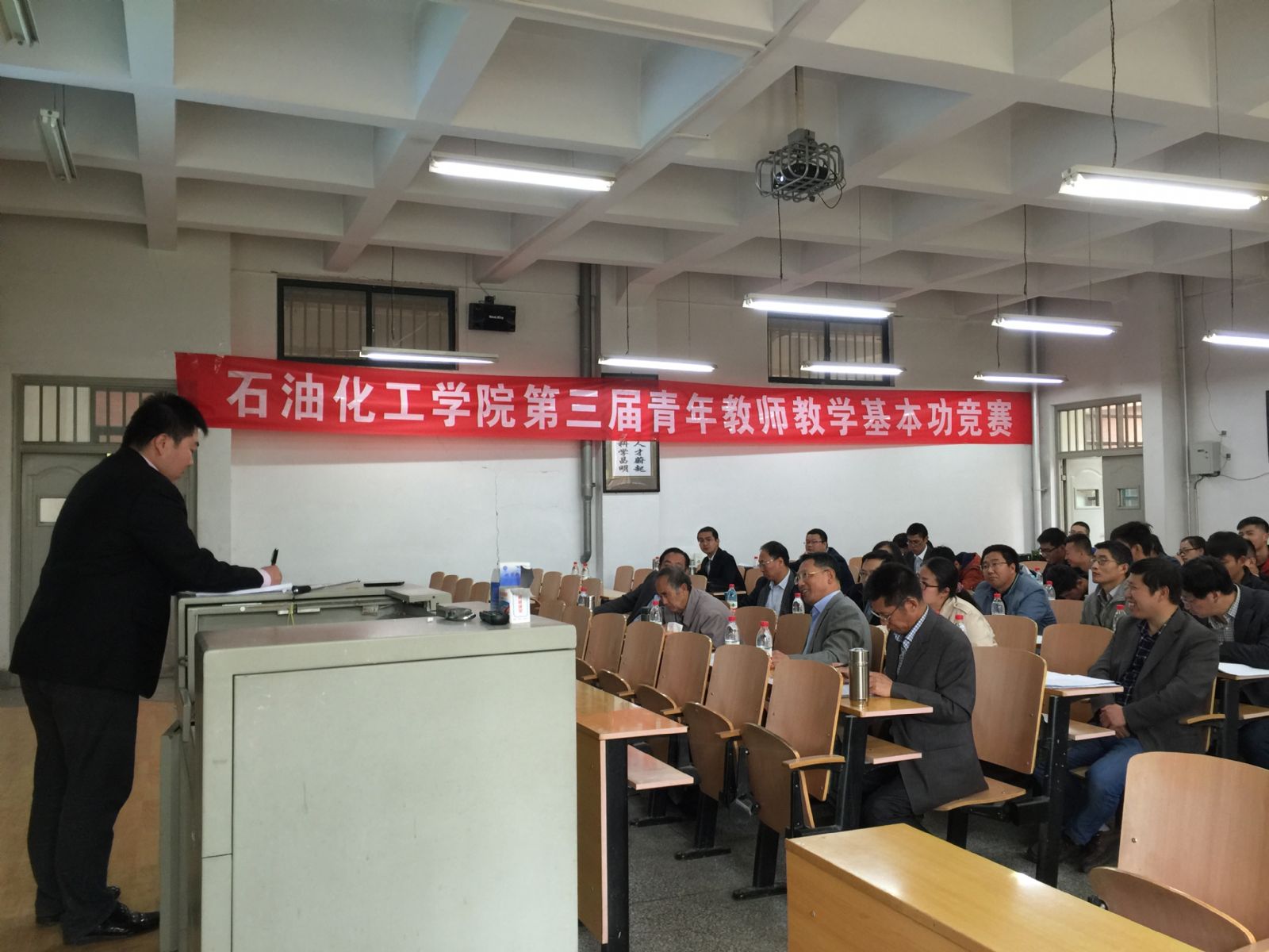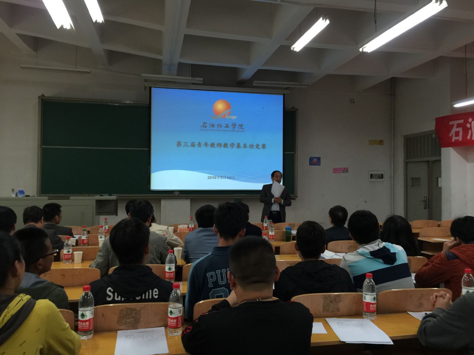 2016年5月14日,石油化工学院在西校区2号楼105教室教室举行了青年教师教学教学基本功竞赛。由学院领导、学院教指委委员及学校资深专家组成评委组,13名各专业学生组成学生评委组,对参加竞赛的14名青年教师通过教案展示、教学演示、现场答辩和总体印象评价等四个环节进行评议。评委从精神风貌、教案设计、课堂组织、内容设置、课件编排、规划板书等方面对参赛教师的授课情况进行了点评。学生代表听课认真、响应积极,从学生角度对讲课进行了客观评价。比赛由教学副院长冯辉霞教授主持。
