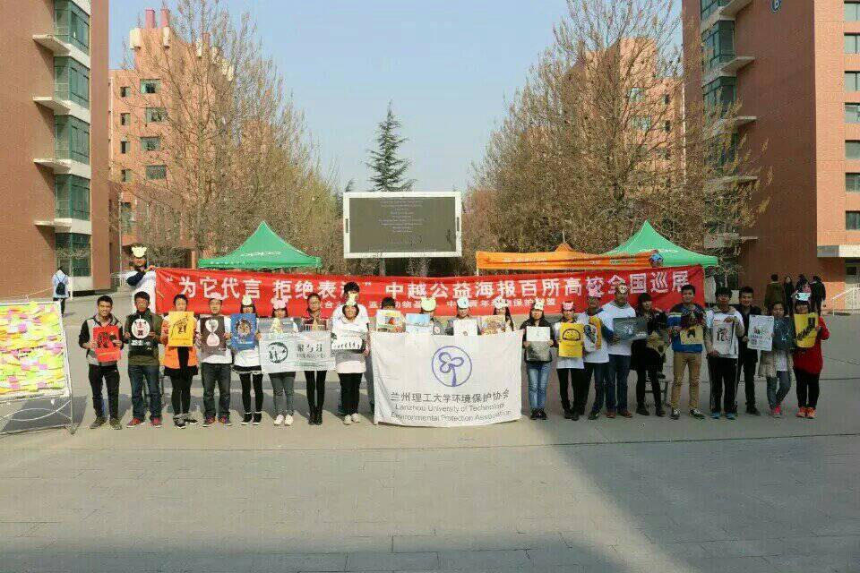 为了在更大的范围内传播爱护动物的公益知识,呼吁大家拒绝观看动物表演、保护动物。2015年11月26日至27日,兰州理工大学环保协会在学校红柳广场举办了由亚洲动物基金会和中国青年动物保护联盟共同发起的“为它代言,拒绝表演”公益海报全国高校巡展活动。