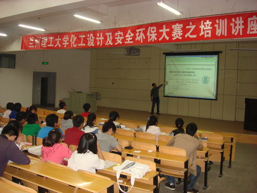 2012年5月28日晚,石化学院在西校区2号楼108教室举办了兰州理工大学第一届化工设计及安全环保大赛培训讲座,大赛组委会邀请了环境工程系谢刚老师做培训,200余名报名参加安全环保大赛的同学参加了此次讲座。