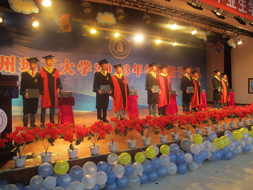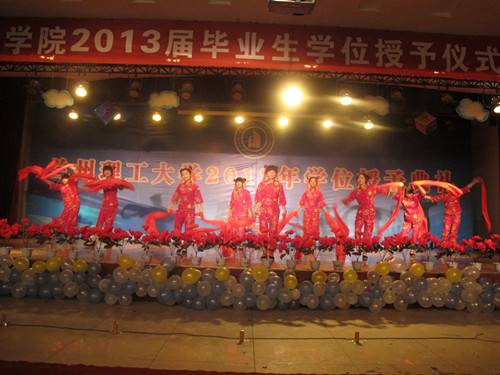 学位授予仪式典礼在庄严的国歌声中拉开序幕。副院长李贵贤宣读了学校学位委员会决定授予学士学位的文件。杨保平院长致辞,对圆满完成大学学业,即将走上社会的2013届毕业生表示衷心的祝贺和由衷的祝愿,希望毕业生不要忘记人生中所经历的各种艰难跋涉和艰辛历练,艰苦拼搏的经历是你们成长的财富;要脚踏实地,从小事做起,去实现更大的理想;要立足自身,做好准备,抓好机遇,在自己的岗位上勤奋工作,诠释生命的精彩。、俞树荣副校长教授、杨保平院长、隽惠玲书记等领导和各专业教师代表一同,为各专业获得工学学士学位的同学授予学位。