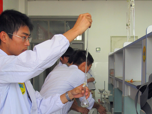 本次大赛是兰州理工大学绿色化学科技创新基地成立后的首次大型竞赛活动,经过第一阶段的笔试,共有11个学院60个参赛小组120人参与第二阶段的实验技能操作竞赛。本阶段的竞赛内容为无机化学、有机化学、分析化学、工程化学中的含铬废水的处理、蒸馏和沸点的测定、未知水样的综合分析和碱性锌酸盐工艺镀锌等四个实验,主要考察学生实验操作能力、实验数据处理及实验报告撰写,团队合作精神、独立解决问题能力。