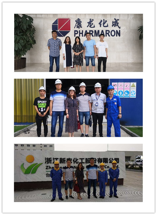 7月6日,调研组一行来到浙江车头制药股份有限公司,公司人力资源部部长冯勇翔介绍公司概况和企业文化,并带领参观了企业生产车间和研发中心。当天下午,调研组一行人员来到浙江新农化工股份有限公司台州新农精细化工厂,学院96届校友、公司张舜祥厂长对学院老师一行表示热烈欢迎,详细介绍的公司发展情况和当地人才引进政策,同时高度赞扬我院学生在企业认真负责、踏实肯干的工作作风,目前都在公司重要岗位,希望能继续推荐优秀毕业生来公司发展。调研组听取了近年在企业工作的校友对学校和学院发展的建议和意见,校友们纷纷表达学院对他们培养的感恩之情,随后共同参观了企业生产车间。