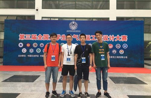 本届大赛赛题分为长距离输气管道工程和长距离输油管道工程两个方向。我校石油化工学院吴鑫老师指导的15级油气储运工程专业张富强、李浩玉、吴涛、叶一帆同学完成赛题-“HN长距离输气管道工程”设计作品成功晋级决赛,并代表我校赴中国石油大学(华东)参加总决赛。