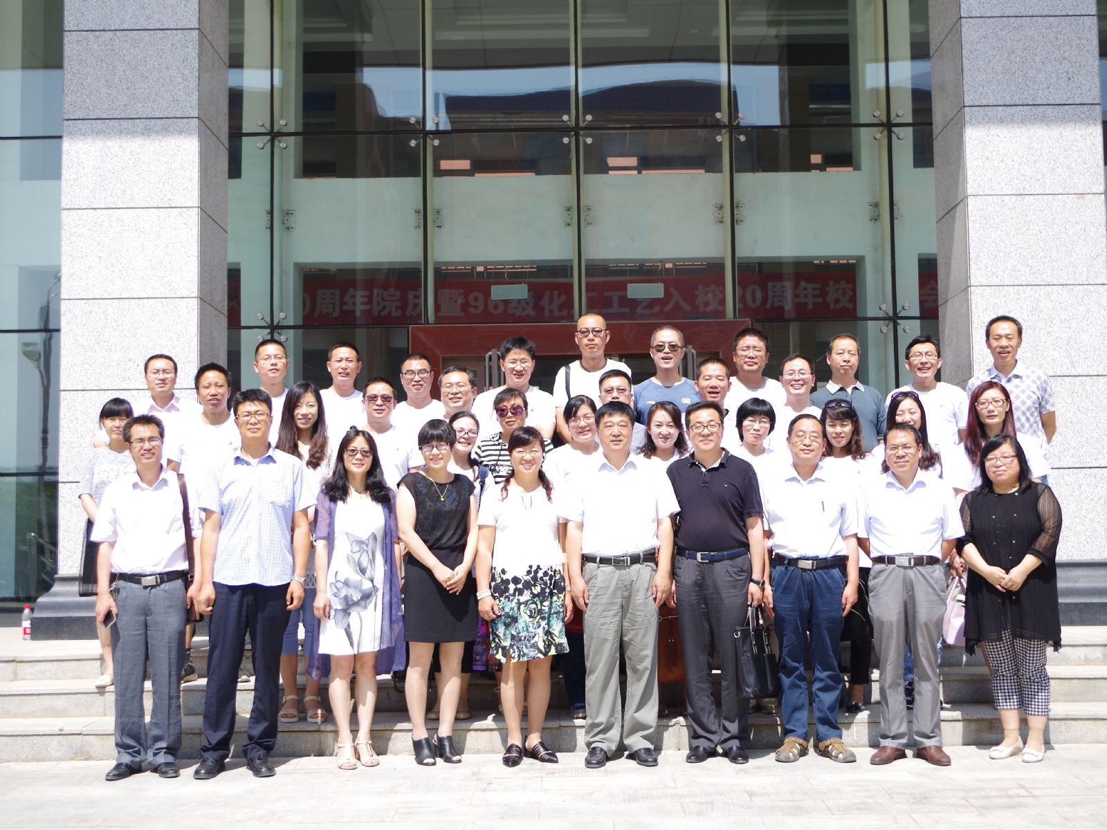 喜迎石油化工学院成立20周年,7月30日上午,石化学院96级化工工艺专业近30余名校友回到阔别已久的母校,追忆峥嵘岁月,展望美好未来。学院在318会议室组织了座谈会,学校副校长俞树荣、计通学院书记马霖、科技处处长李贵贤、易班发展中心主任马凤英、资产经营公司副总经理张飞龙、石化学院全体院领导以及化工系部分教师出席座谈会。