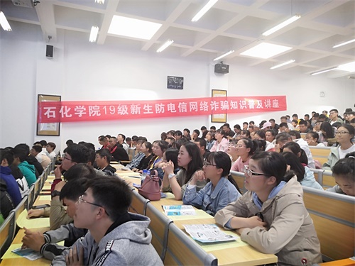 9月17日下午,石化学院邀请七里河区公安局反电信网络诈骗大队马顺延警官在彭家坪校区观成楼308教室举行了防电信网络诈骗知识普及讲座。石化学院19级全体新生参加了讲座。