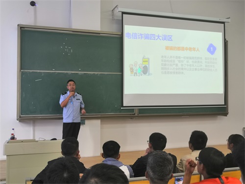 马顺延警官首先向大家介绍了“什么是电信诈骗”、电信诈骗的危害及突出特点以及一些大学生经历“电信诈骗”的事例。他着重向同学们讲解了电信诈骗的四大误区和电信诈骗的12大手段及应对方法,让同学们对电信诈骗有了更加深入的了解,告诫同学们要提高安全防患与自身信息保密意识,不要轻易点击链接与泄露个人信息,同时加强自身的遇事处理能力,树立诚实做人、不贪心、不盲目的人生观念。