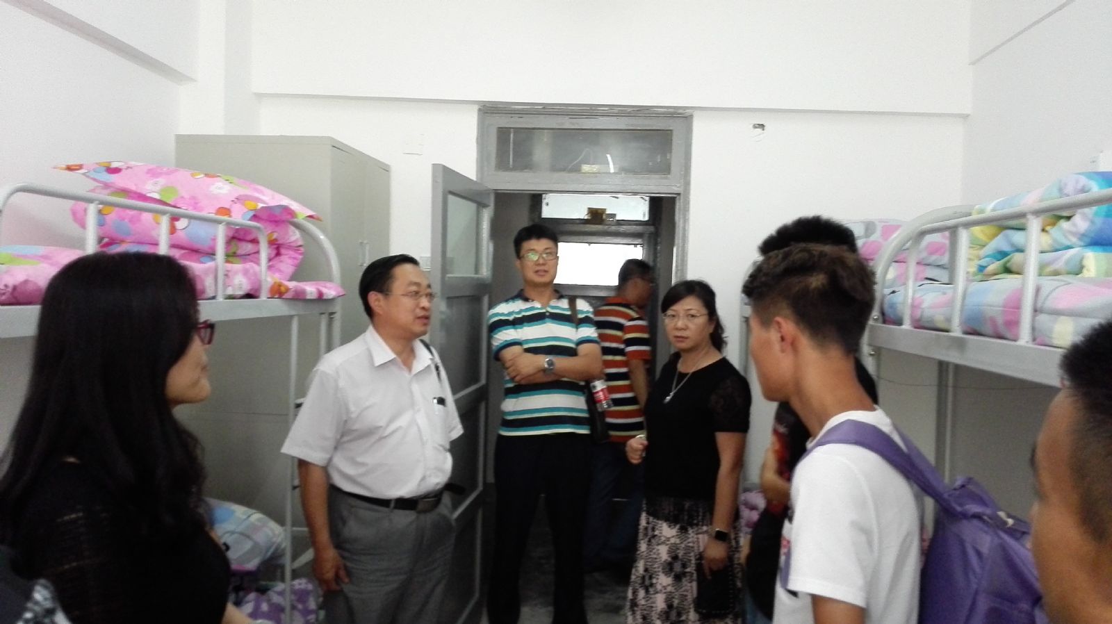 宿舍是学生生活的主阵地,也是学风建设的重要抓手。学院领导老师走访新生宿舍,不仅让新生同学感受到了来自学院的关心和关怀,让大家感到了家的温暖,而且拉近了师生间的距离,对新生缓解刚入学的各种不适起了积极的作用。