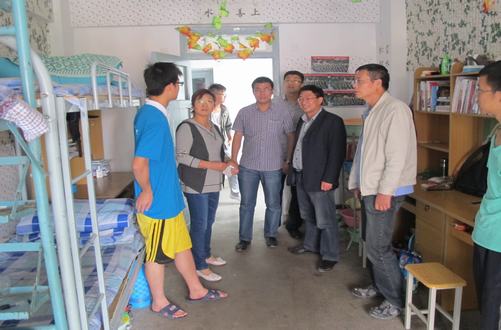 院领导走访了我院学生所在宿舍楼。走访男生寝室时,大部分寝室内物品摆放整齐,地面干净,良好的卫生环境得到领导们的表扬,但也就个别寝室存在脏乱问题提出了批评。每到一间宿舍,领导们都仔细查看寝室门窗,寝室用电设施等,规范宿舍管理,提醒同学们提高安全意识,杜绝安全隐患,维护好共同生活学习的环境。在走访中,隽书记亲切询问学生生活是否有困难,学习怎么样,询问同学们对于我校第二次党代会精神是否了解,对我校及学院建设是否有好的建议,宿舍氛围非常活跃,同学们积极献言献策。