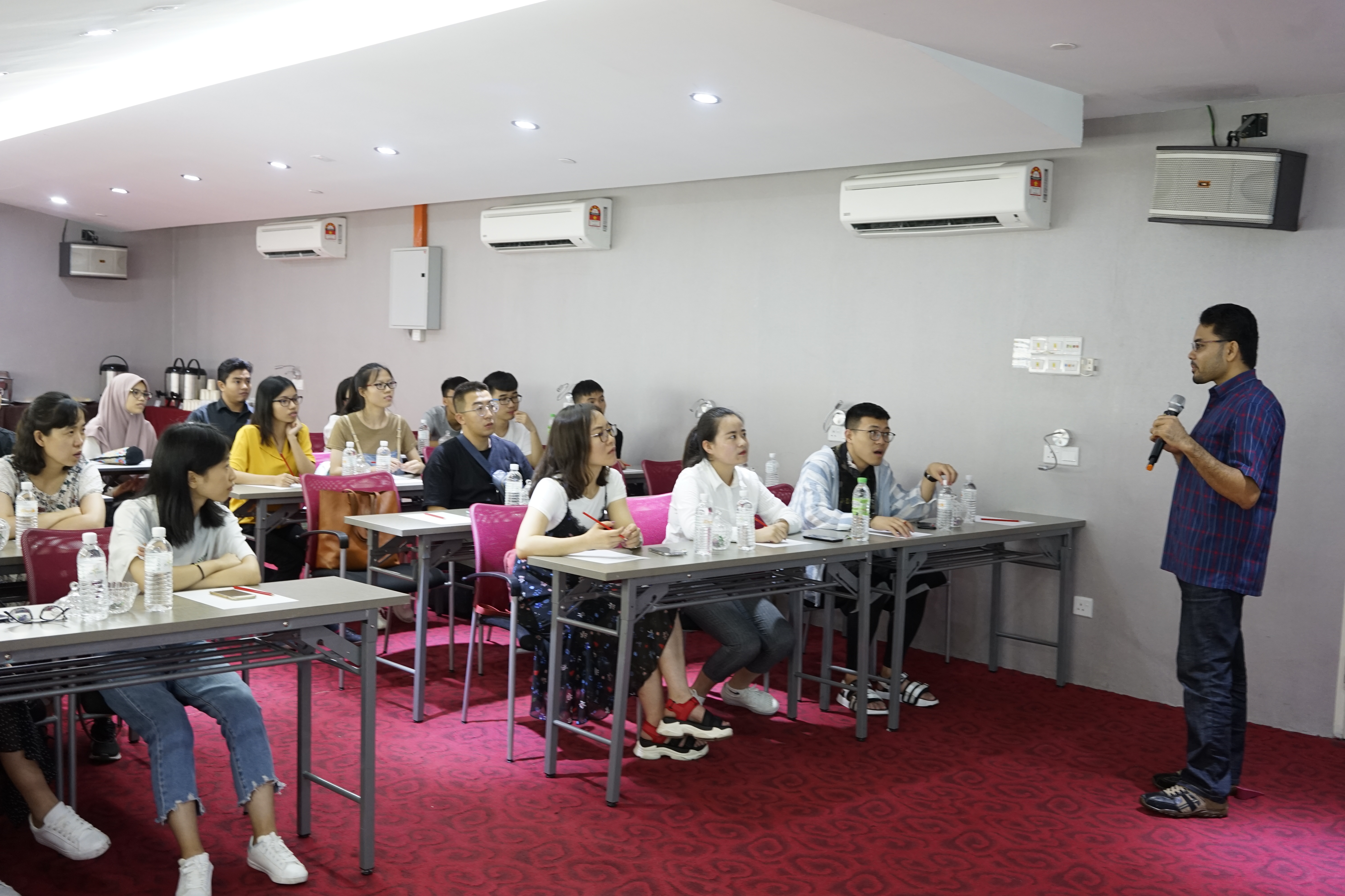 彭亨大学国际办公室的Azmir Azhari老师对此次暑期项目的日程安排、活动特色等进行了讲解,并对彭亨大学的开建、发展及主要学科情况做了介绍。Azmir Azhari老师提到,该校是马来西亚30所独立的公立大学之一,是一所作为技术基地而建成的大学,专长于工程和技术领域,近些年的迅猛发展不仅在马来西亚甚至在世界范围内相关领域都产生了一定的影响。