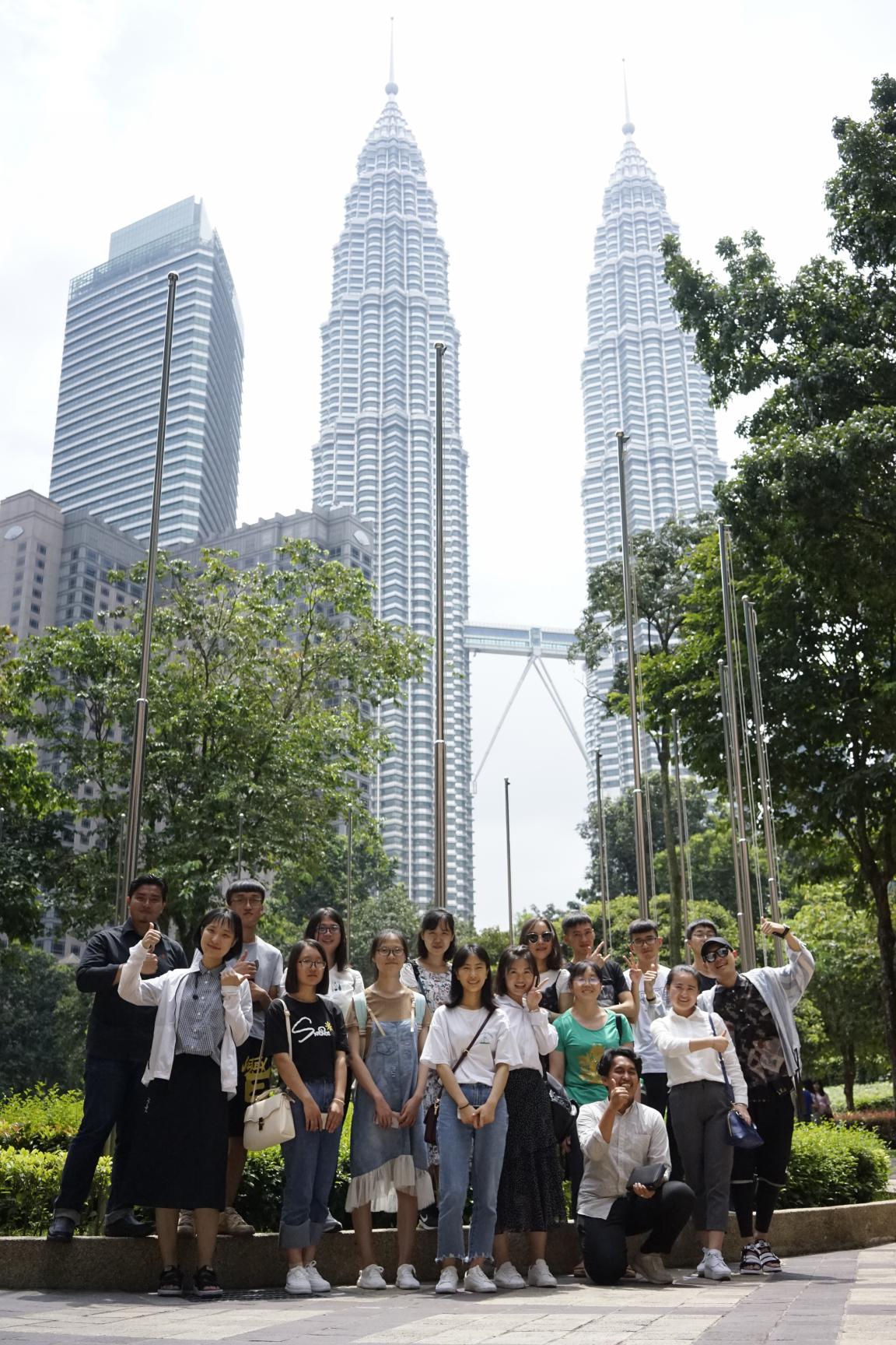 在第一天行程的最后,双方参观了吉隆坡的标志性城市景观——马来西亚首都吉隆坡石油双子塔,并拍照留念。晚上九点准时到达马来西亚彭亨大学Gambang校区。