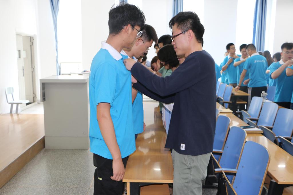 学院学生党总支组织全体党员举行新发展预备党员入党宣誓仪式和老党员重温入党誓词活动。面对鲜红的党旗,全体党员庄严地举起右拳,慷慨激昂的宣誓声,抒发着对党的忠诚和决心,表达了作为一名党员应坚守的责任和使命。支部书记为党员代表佩戴了党员徽章,新发展的预备党员相互佩戴了党员徽章。随后,预备党员代表作了发言,郑重承诺作为党员,一定要恪守在党旗下的诺言,更加严格要求自己,时刻保持共产党员的先进性和发挥党员先锋模范作用,努力使自己成为一名合格的共产党员。
