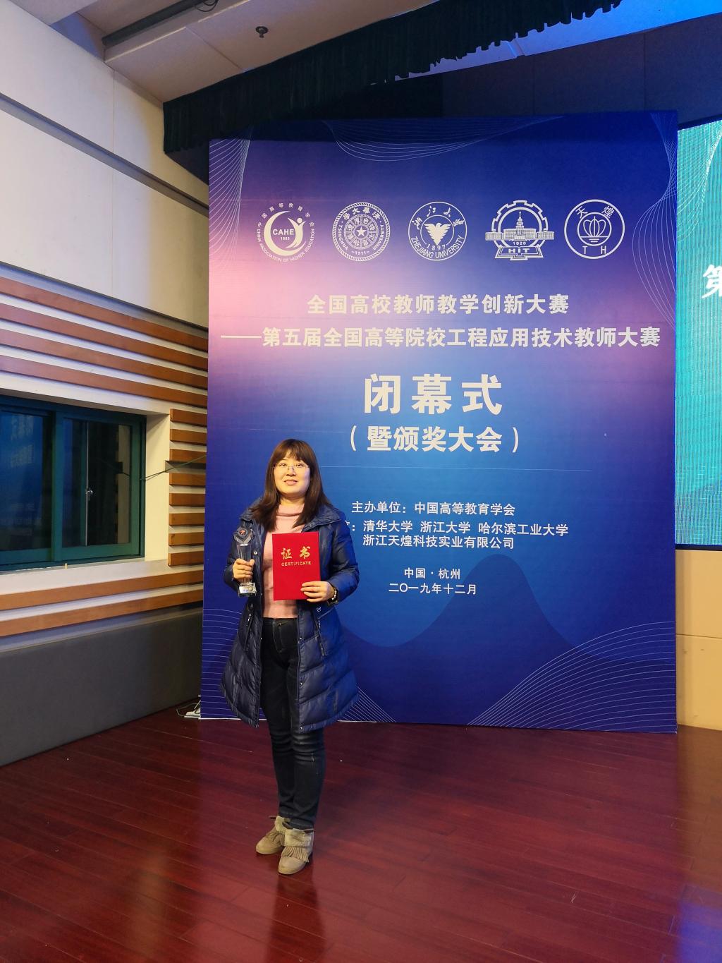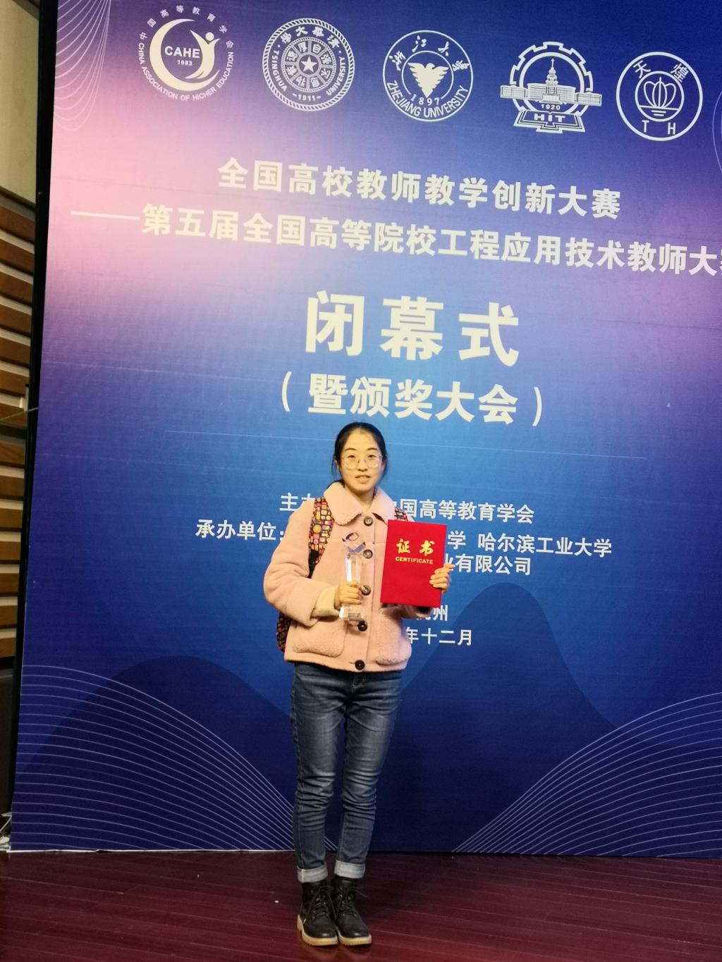 继去年学院教师获得第4届全国高等院校工程应用技术教师大赛一等奖和二等奖后,学院今年积极组织教师参加本届大赛,共组织四名教师报名参赛,进行了前期的培训,其中三名教师顺利入围决赛。在决赛阶段经过工程实践操作、目标命题实现及专家答辩环节,赵秋萍、张秀君老师经过细心努力的备赛,在决赛环节中发挥实践创新精神,表现优异。最终赵秋萍老师和张秀君老师在“E&E4化工分离与节能技术”赛项中分别获得一等奖和三等奖的好成绩。