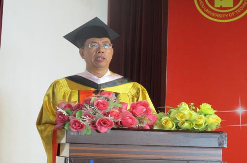 俞树荣副校长致辞,对圆满完成大学学业的全体毕业生表示衷心的祝贺,祝愿毕业生扬帆起航,实现梦想。一是要学会微笑,微笑被誉为“解语之花、忘忧之草”,微笑面对,我们才会拥有灿烂的明天;二是要充满信心,点点滴滴的积累,才能够迈向成功的巅峰;三是要有责任之心,勇于担当,激励我们不断求索、不断创造;四是要有宽容之心,要有海纳百川的胸怀,赢得生活的精彩。