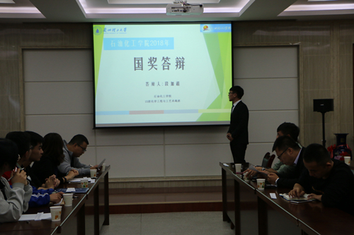 9月14日中午,石油化工学院在彭家坪校区石化楼318会议室举行了2018年度国家奖学金答辩会。学院党委李荣华副书记、班主任代表油储系主任凌晓、辅导员和学生代表共11人组成本次国奖答辩评委会,2018级新生代表参加了本次大会。