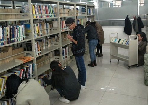 初到图书馆,支部成员首先将图书漂流站摆放杂乱的书籍进行整理后上架码好,使得之前看起来杂乱无序的漂流站一角面貌一新。接下来,支部成员分成3个小组,分别负责图书馆1-3楼的图书整理及卫生清洁工作,大家首先积极与在馆的工作人员及学校图书协会同学沟通,在他们的帮助下,支部成员很快学会了将新买的图书进行编号,编号后将书放回相应书架等常见的图书整理操作。之后与图书协会成员共同用透明胶贴补了残缺破损的书籍。最后,大家有的擦拭书架,有的清洁图书上的灰尘,有的打扫地面垃圾,使图书馆的整体环境得到彻底的清洁。
